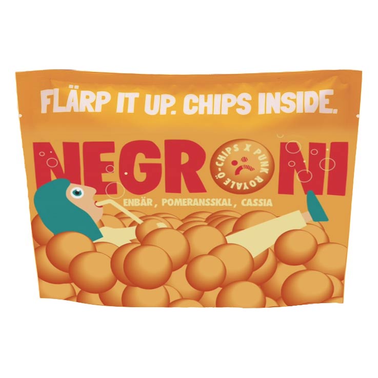 Chips til Negroni - Enebær, Pomeranian peel, Cassia 50 g som Ö chips på Gotland udviklede sammen med Katherine Bont hos Punk Royale, da Negroni er hendes yndlingsdrik, som er perfekt at nyde sammen med disse bitre og søde chips.