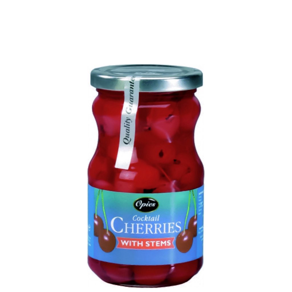 Cocktailbær med stilke. De klassiske cocktailbær med stilke, perfekt til cocktails som Manhattan. Disse kirsebær er omhyggeligt udvalgt og modnet i et lag sammen med deres stilke og har det perfekte look til drinks og cocktails.