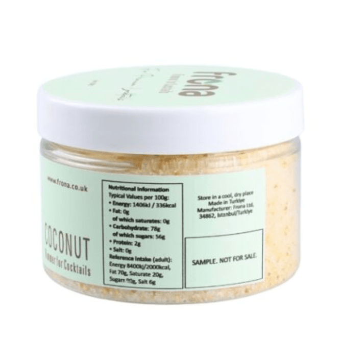 Cocktailrimmer kokosnød 100 gram er ideel til cocktails, mocktails, limonader eller kulinariske dekorationer. Giv dine drinks og kulinariske kreationer et forfriskende twist med cocktailrandet kokos!