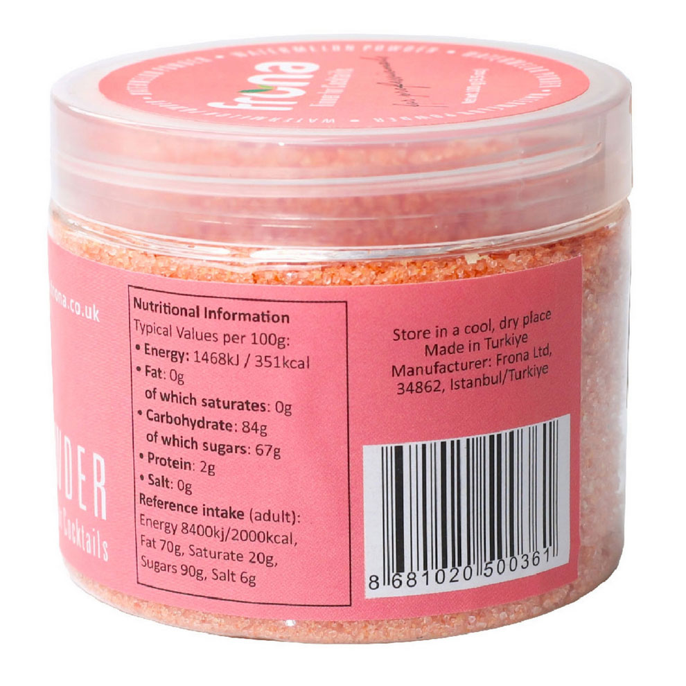 Cocktailrimmer vandmelon 100 gram er ideel til cocktails, mocktails, limonader eller kulinariske dekorationer. Giv dine drinks og kulinariske kreationer et forfriskende twist med cocktailrimmer vandmelon!