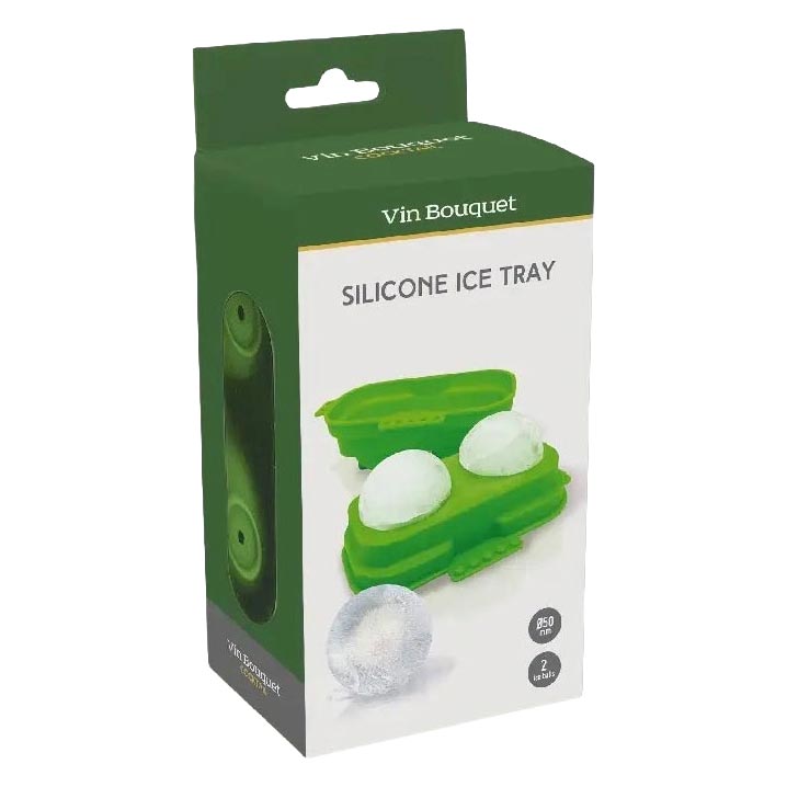Isform til runde isterninger i grøn silikone fra Vin Bouquet er et stilrent og praktisk tilbehør, der gør det nemt at lave to perfekt runde isterninger. De større isterninger smelter langsommere end almindelige isterninger, hvilket hjælper med at holde din drink kold længere uden at fortynde smagen.