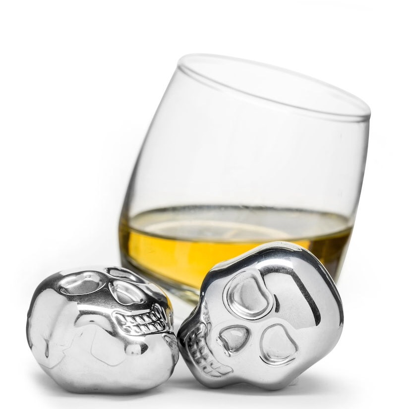 Sagaform kranieformede isterninger 2-pak. Et par lækre isterninger i metal, der holder drikken kølig uden at fortynde den med vand. Disse kranieformede isterninger stilles i køleskabet i 2 timer før brug, og holder effektivt din drink nedkølet i lang tid. Leveres i stilfuld sort opbevaringstaske.