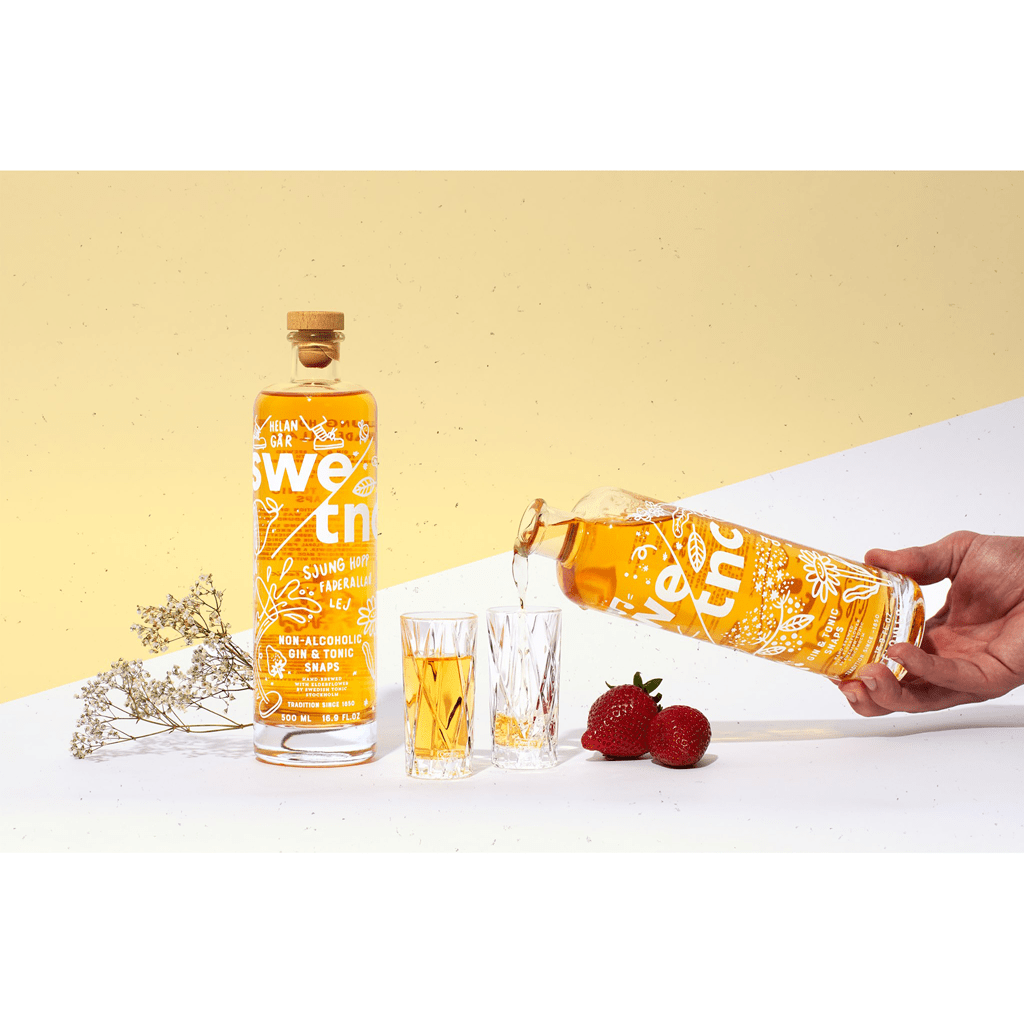 Gin & Tonic snaps alkoholfri fra svenske Tonic 50 cl som har en frisk klar smag af gin & tonic og hyldebær, perfekt til maden til midsommer, julebordet eller enhver anden lejlighed, hvor du kan drikke snaps. For at du kan få den pjaltede følelse af en snaps, er der også en underliggende tone af chili.