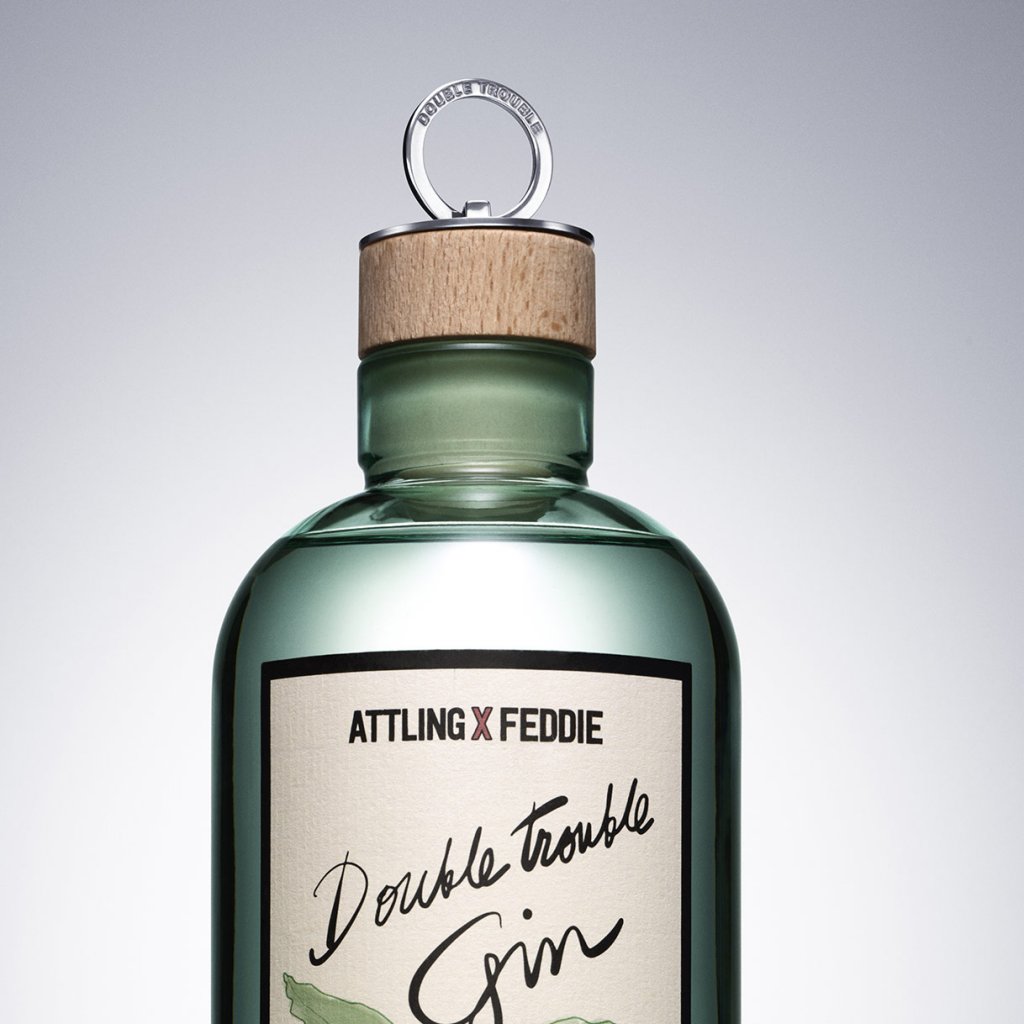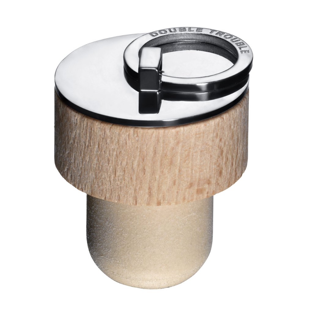 Flaskeprop med ring til "Double Trouble Gin bottle", designet af skaberen Efva Attling. Denne eksklusive flaskehætte er specielt designet til hendes "Double Trouble Gin", et resultat af det fremragende samarbejde mellem Efva Attling og Feddie Ocean Distillery.