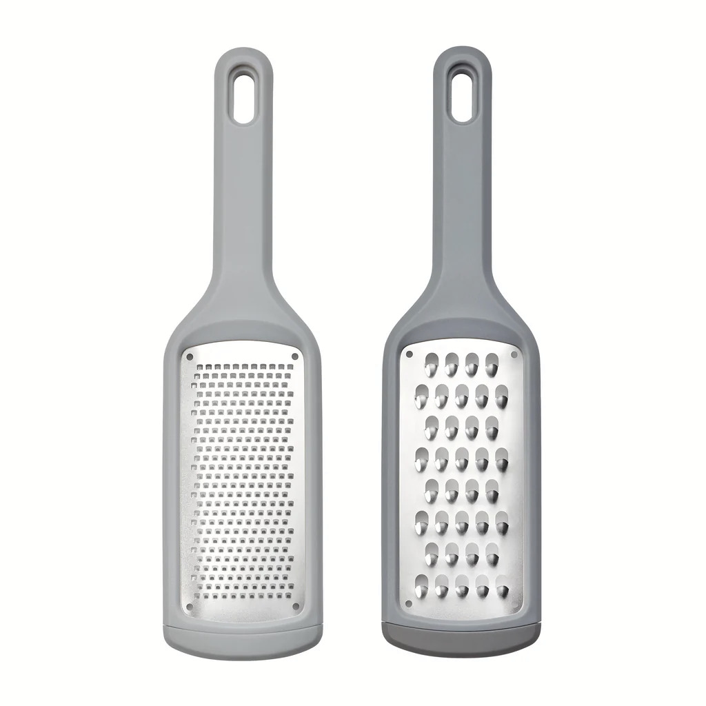 Med deres ergonomiske greb og anti-skrid design giver disse rivejern stabil og sikker håndtering, uanset hvad du river. Skarpe og holdbare klinger giver dig mulighed for at arbejde hurtigt og effektivt, mens den holdbare konstruktion sikrer, at disse rivejern vil være en pålidelig del af dit køkken i de kommende år.