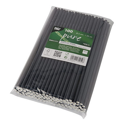 Sugerør af papir 22 cm sort fleksibel 100-pakning