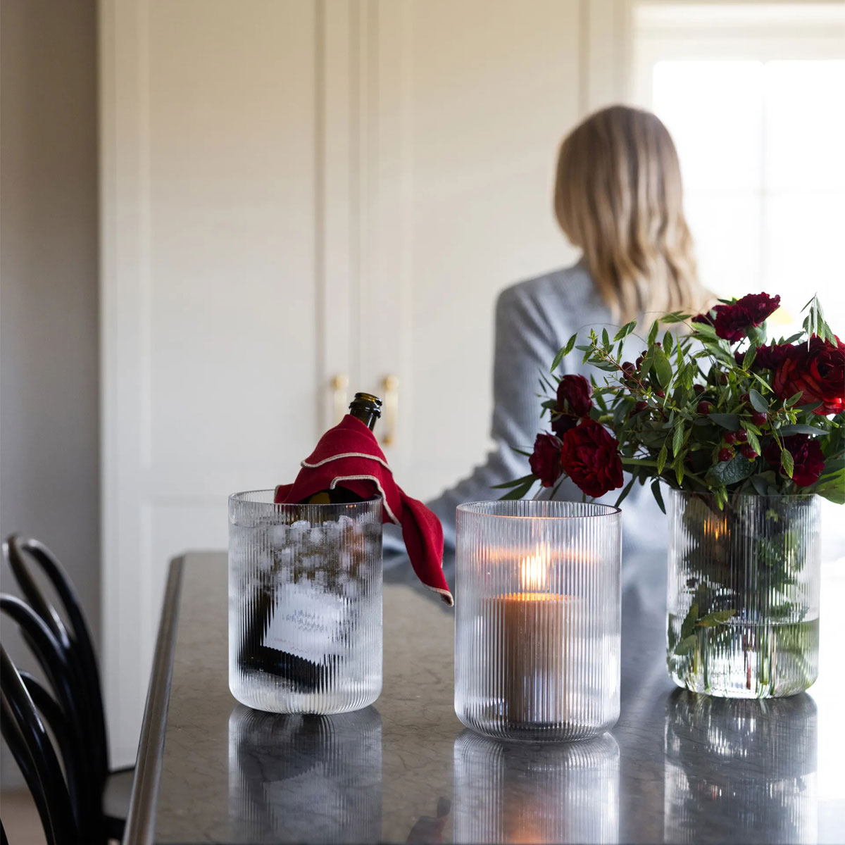 Blanka er et alsidigt og elegant designprodukt, der kombinerer tre funktioner i ét. Brug den som en stilren vase til blomster, en smuk lysestage til at skabe stemning eller som en elegant vinkøler til festlige lejligheder.