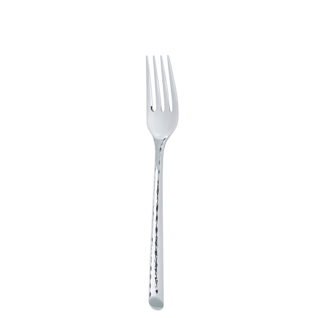 Stilfuld gaffel med en skinnende finish, der er blevet hamret for at give en flot struktur til finishen. Acoma bordgaflen fra Chef & Sommelier har et stilfuldt håndtag, der ledsages af en perfekt afbalanceret gaffel. Håndtagets smukke struktur bidrager til et elegant design og øger grebet. En lækker og luksuriøs gaffel, der er en fornøjelse at spise med.