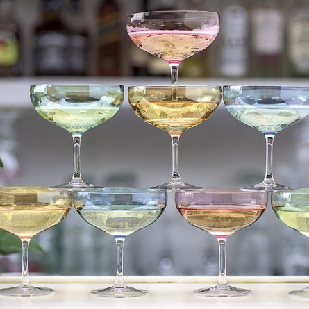 Det imponerende glas har en generøs kop, der lader champagnens aromaer udvikle sig fuldt ud, mens dens bløde blå farve skaber en magisk og indbydende atmosfære med hvert glas. Hvert glas er unikt og bærer håndværkets sjæl, hvilket gør hvert glas til et særligt mindeværdigt øjeblik.