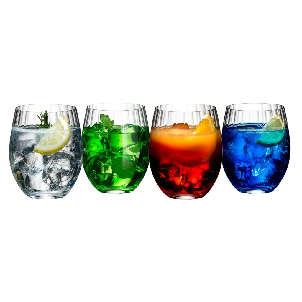 Riedels nye Mixing Set Tonic indeholder fire glas, der er inspireret af Riedels Optical O drikkeglas – tumblere, perfekt til at blande tonic-baserede cocktails og drinks i.