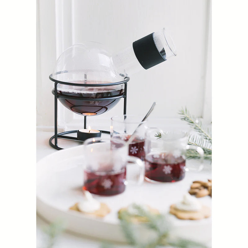 Snöstjärna Gløggkaraffel, der rummer hele 1,3 liter med et sort smedestativ og varmelegeme i ét. Server og hold gløggen varm på en glat måde.