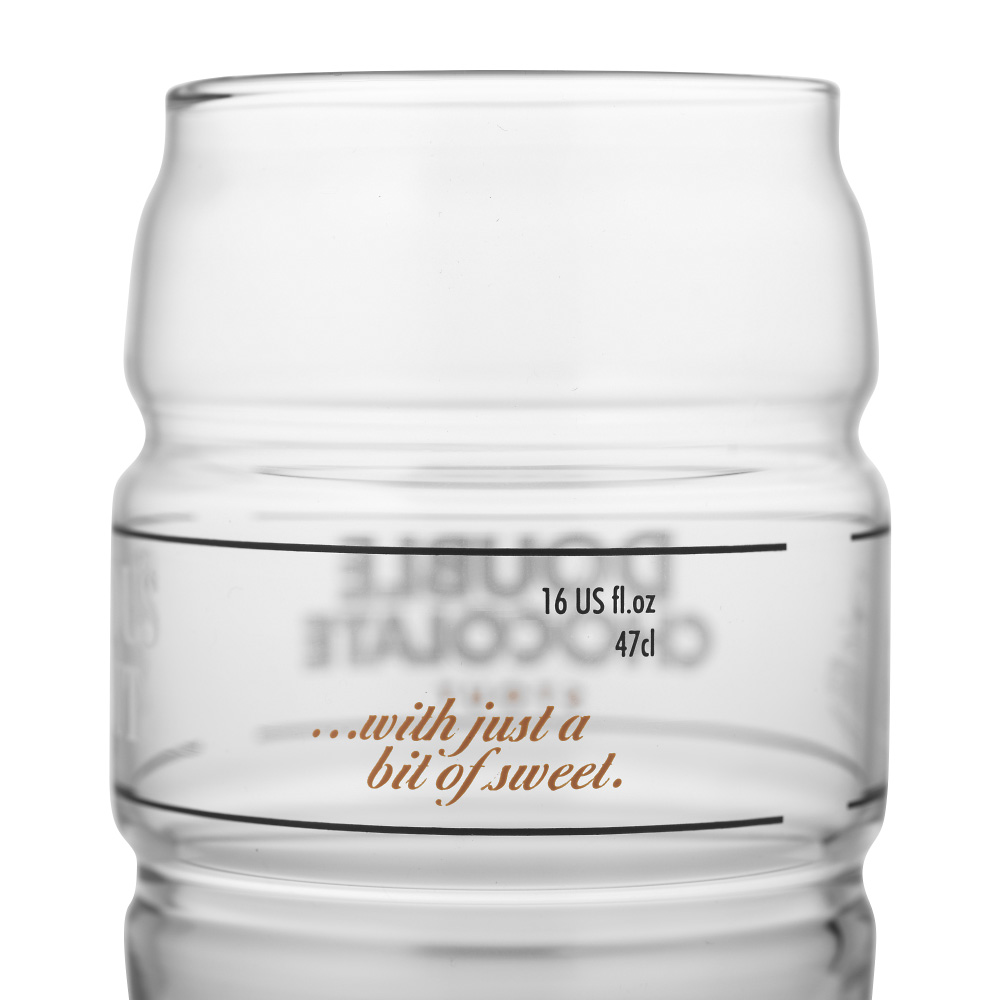 Youngs Double Chocolate Stout ølglas til en mørk og saftig øl med klare toner af chokolade. Youngs Double Chocolate Stout har både chokolademalt og mørk chokoladeessens i sig, hvilket giver denne øl en robust og fyldig smag trods det relativt lave alkoholindhold. Dette ølglas har et helt unikt design. Glasset er udformet som en ølfad, der ofte bruges ved servering af Real Ale, som er hovedtypen af øl, som Young's Brewery producerer, selvom vi sjældent ser det i Sverige. Rundt om glasset er de forskellige print Double Chocolate Stout, Serious Stout, With just a bit of sweet og Young's Brewery på hver side.