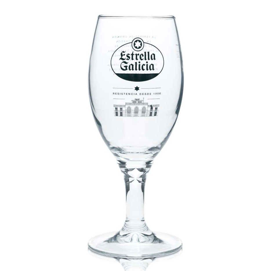 Estrella Galicias elegante 30 cl ølglas til øl brygget af familiebryggeriet Hijos de Rivera, med stolt oprindelse, der går tilbage til det tidlige 20. århundrede, hver tår af Estrella Galicia er en fejring af tradition og håndværk.