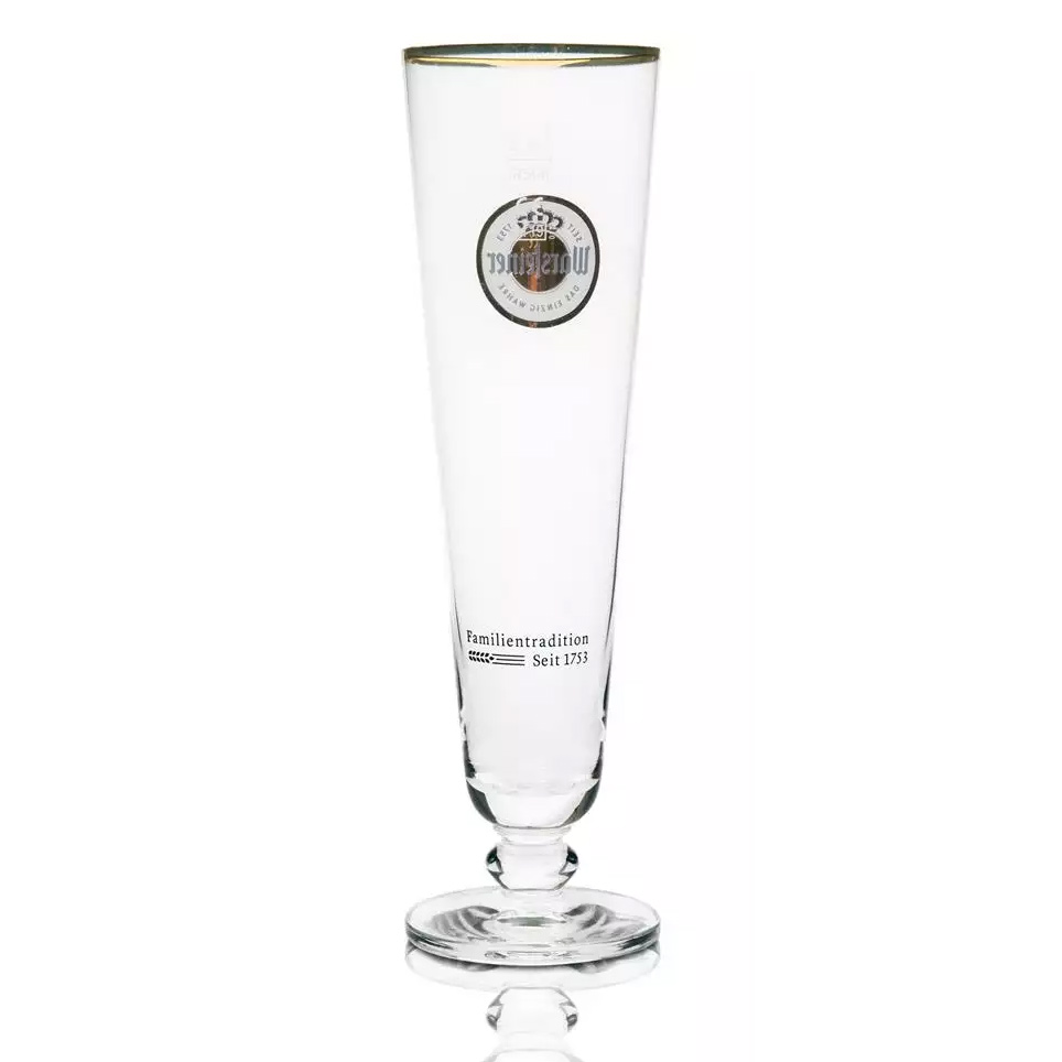 Glasset har guldkant i toppen og er forsynet med et lækkert print med Warsteiner logo.