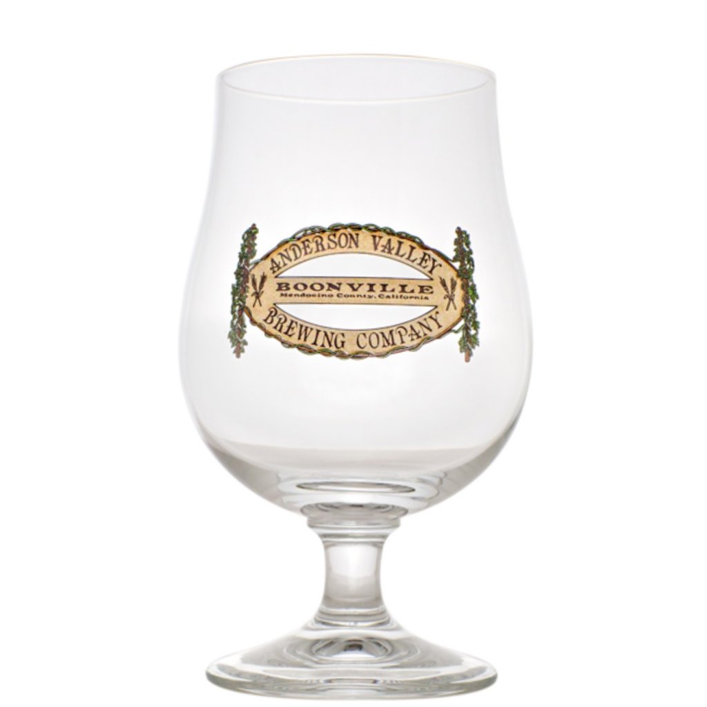 Ølkop Anderson Valley ølglas. Det amerikanske håndværksbryggeri Anderson Valley fra Boonville i Californien er med sine forskellige højkvalitetsøl blevet et af de mere populære bryggerier. Denne ølkop fra Anderson Valley er smuk i sin enkelthed. Korrekt cupped ølglas på fod med Anderson Valleys logo trykt foran.