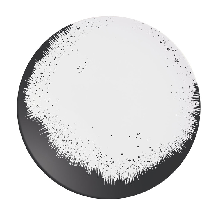 The porcelain plates of the Holi collection are colorful. Their red / white or anthracite gray / white decor draws inspiration from spices, as if a breath had scattered them on the plate.