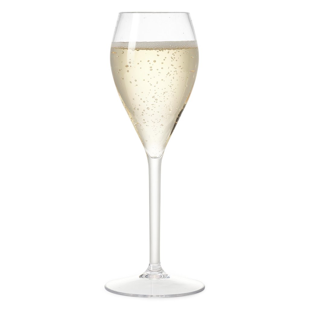 Champagneglasset rummer cirka 16 cl og er lavet af BPA-fri tritanplast.