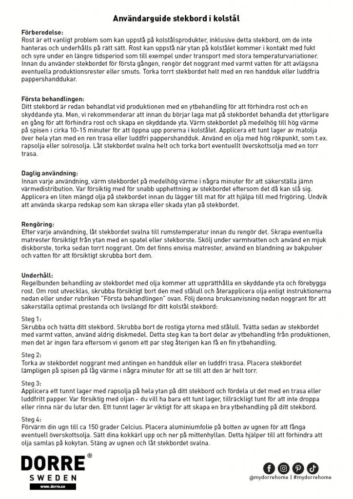 Dorre er en svensk familieejet virksomhed grundlagt i 1963 i Borlänge. Virksomheden startede i en lille kælder og er siden vokset til en betydelig aktør på det svenske designmarked. I dag drives Dorre af tredje generation og er kendt for at tilbyde prisvenlige produkter med høj kvalitet og gennemtænkt design.