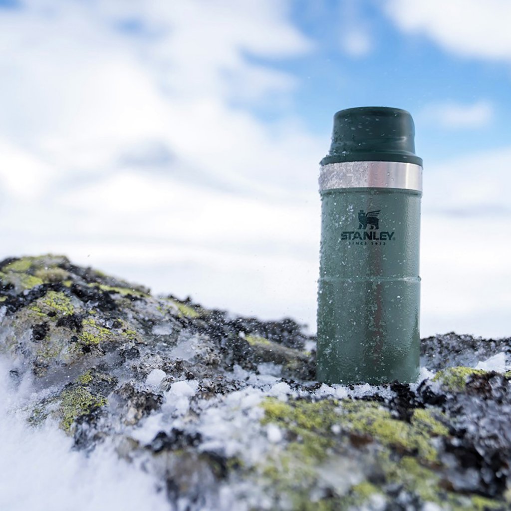 Stanley Trigger Action Termokop grøn 35 cl med dobbelt vakuum isolering, hvilket betyder at varme drikke holder sig varme i op til 5 timer, kolde drikke holder op til 8 timer.