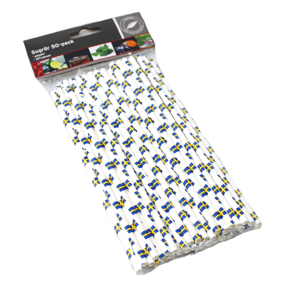Sugerørene er 100% biologisk nedbrydelige og kan smides i genbrugsboksen efter brug. Sugerørene sælges i praktiske 50-pakker, hvilket gør dem perfekte til store forsamlinger eller til at have ved hånden til fremtidige lejligheder. Med en længde på 19,7 cm og en omkreds på 6 mm er de perfekte til en række forskellige drinks. Sugerørene har motiver af det svenske flag.