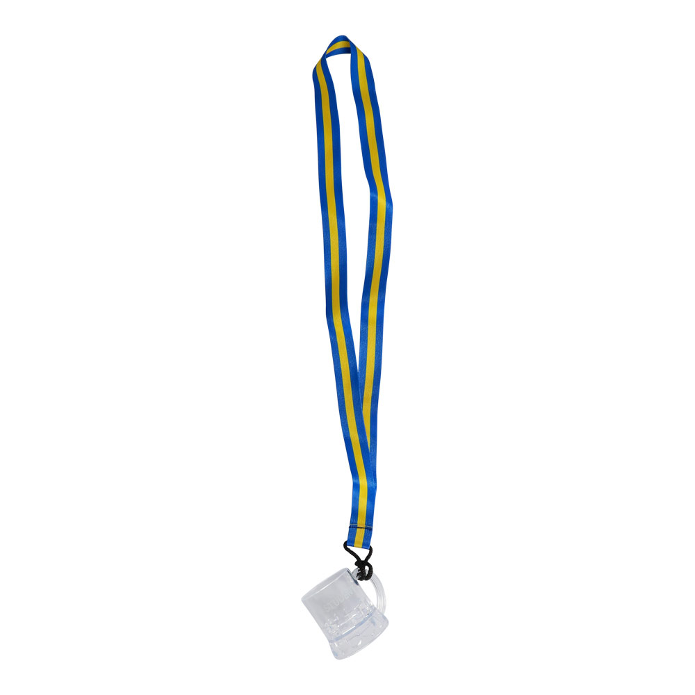 Shotglasset med blå-gult bånd er det perfekte tilbehør til studenten, der vil fejre med manér! Med det klassiske svenske farvebånd om halsen er glasset altid klar til en skål – når som helst, hvor som helst.