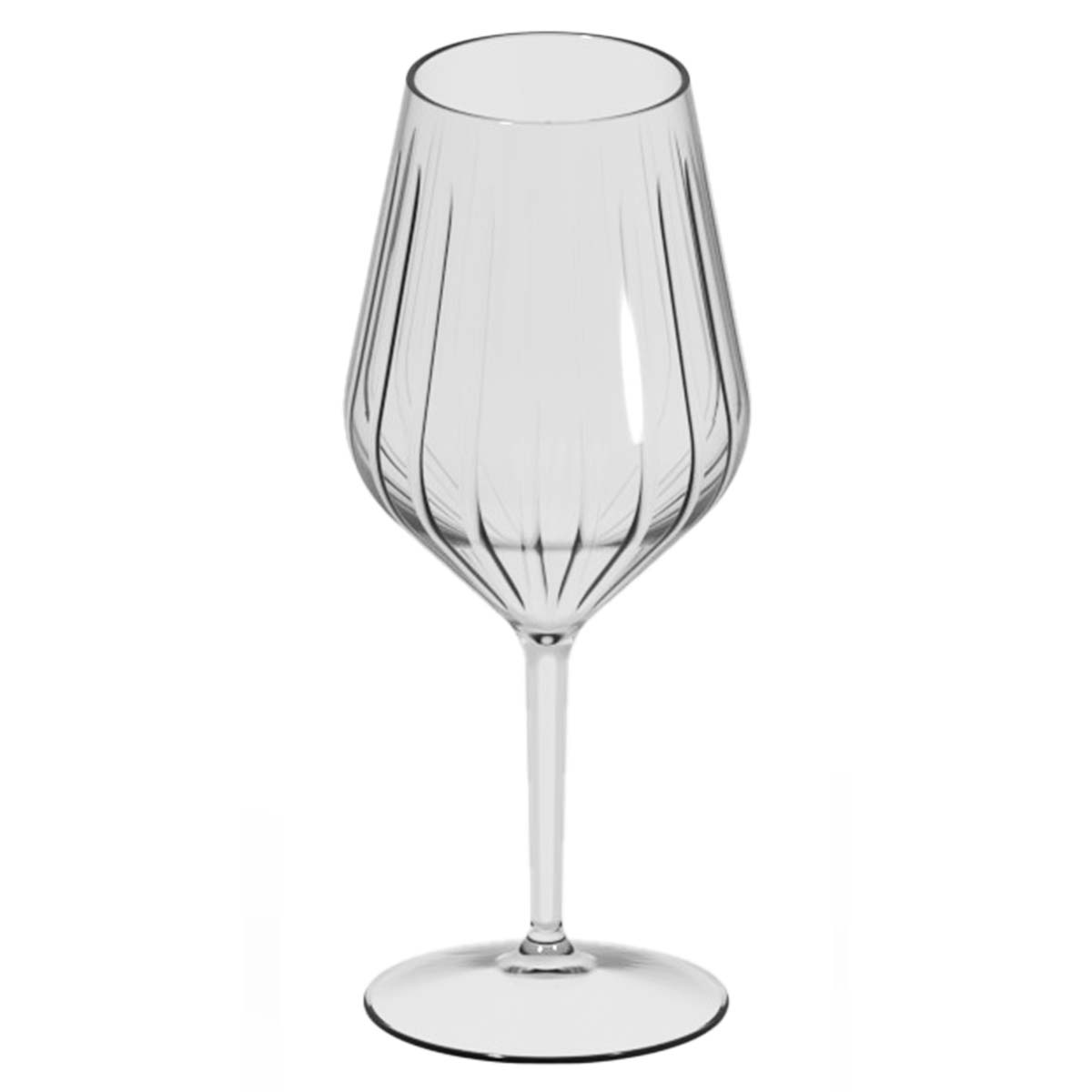 Kaleido vinglas 47 cl i slidstærk Tritanplast er et stilrent og alsidigt glas fra italienske Goldplast. Det elegante design med riflet, let indadbøjet kuppel foroven giver et eksklusivt udtryk, samtidig med at formen gør glasset velafbalanceret og behageligt at holde.