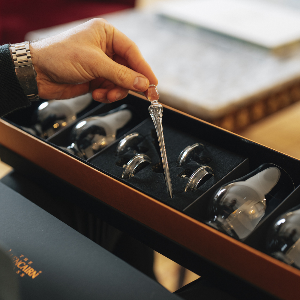 • 1 mundblæst Glencairn glaspipette – til præcis dosering af vand, når du vil åbne whiskyens karakter